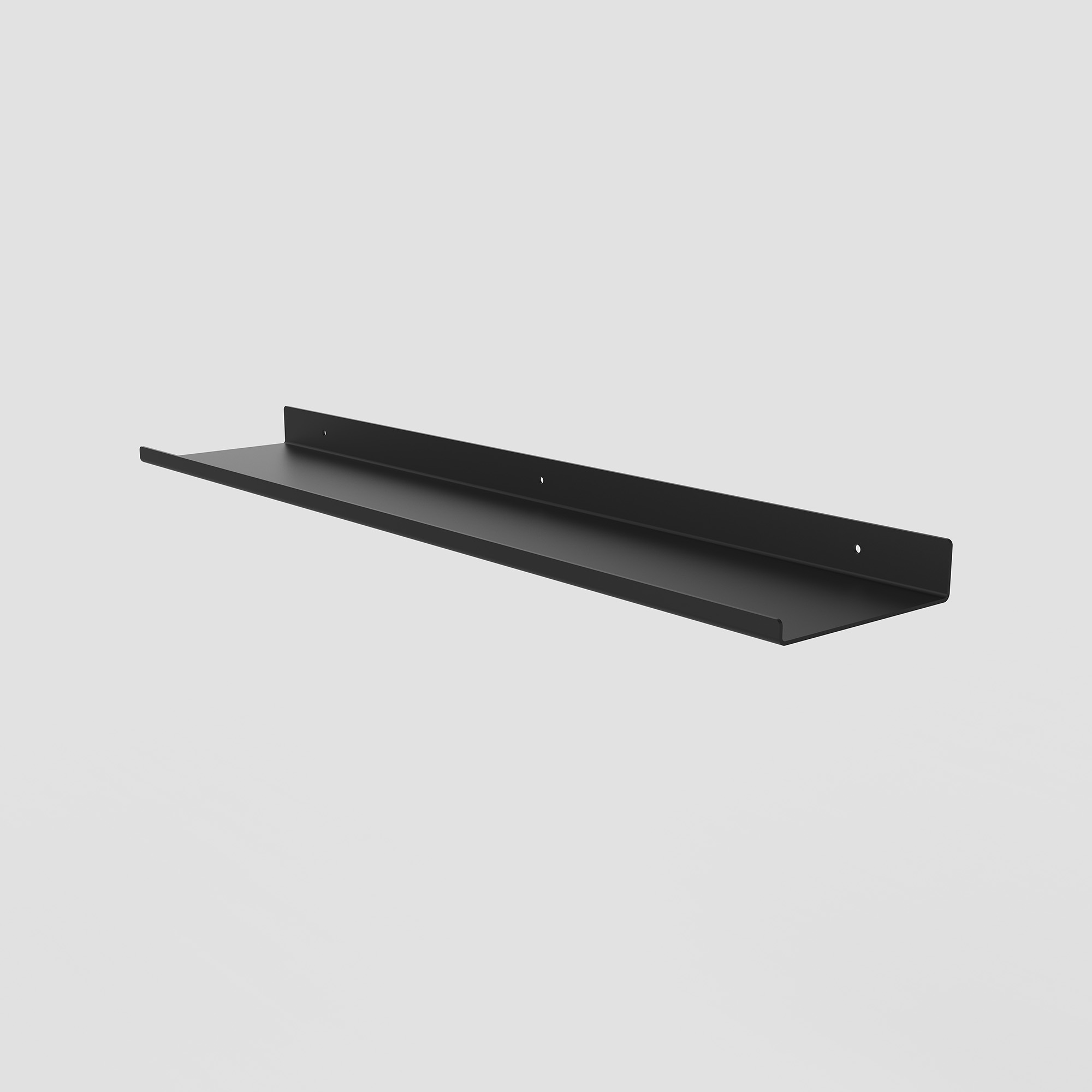 מדף מתכת בעיצוב מינימליסטי עם טאץ' חכם – קיפול קדמי דקיק שמוסיף גם עיצוב וגם ביטחון לפריטים.