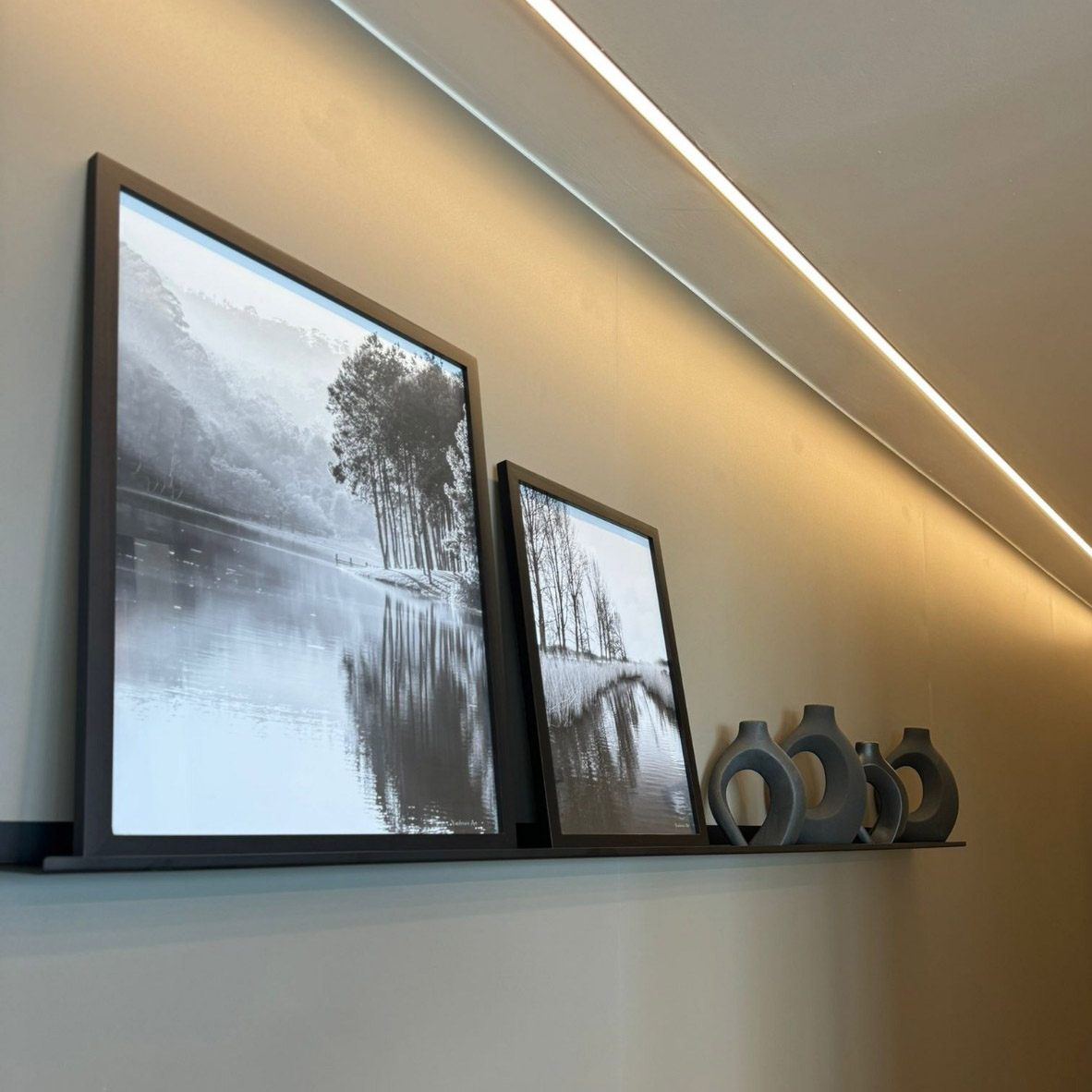 הקיפול יוצר מסגרת עדינה שמונעת מהעצמים להחליק, מבלי לפגוע בקו הנקי של המדף.