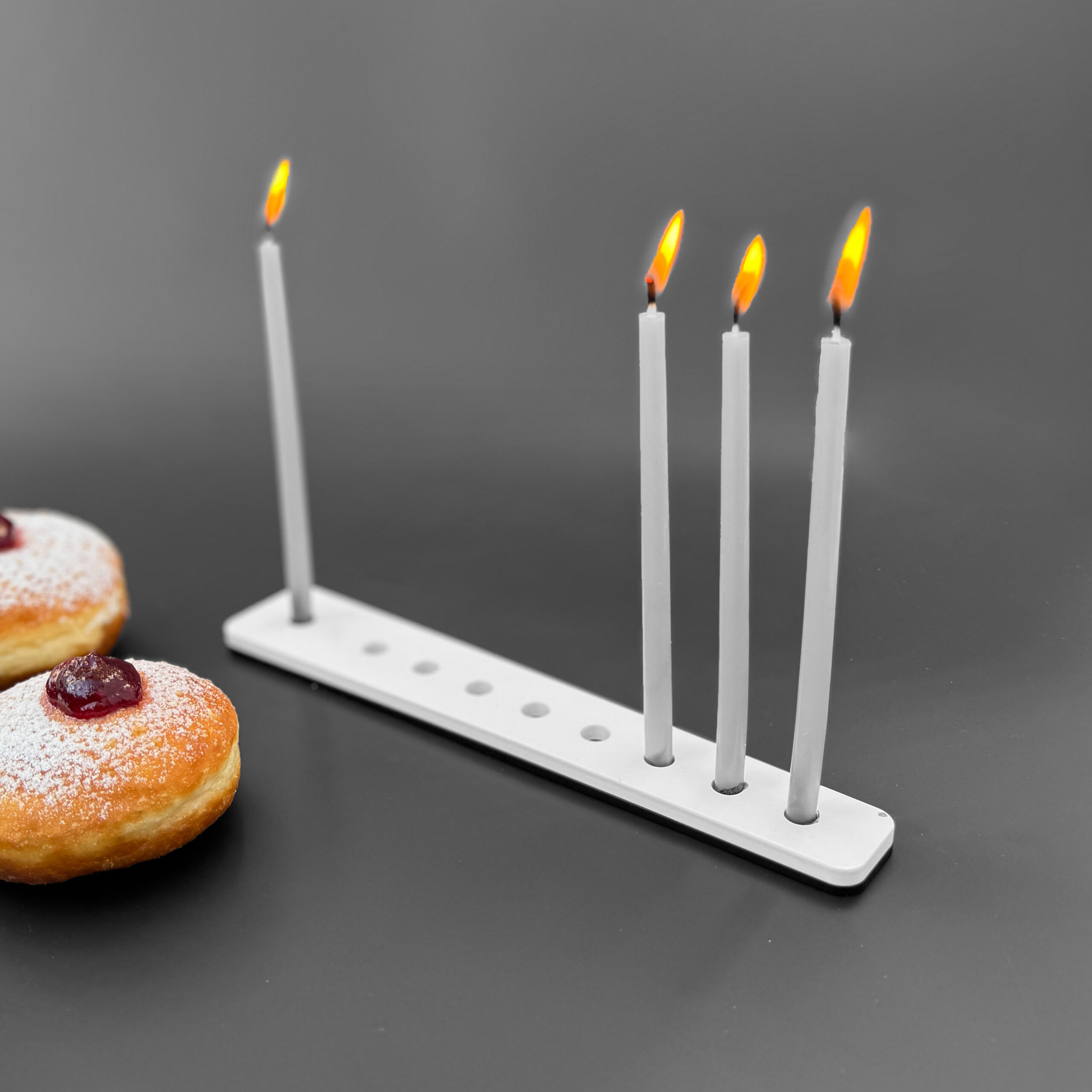חנוכיית מתכת ייחודית בעיצוב מינימליסטי ונקי.