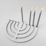 חנוכיית מתכת ייחודית בעיצוב אופקי ומינימליסטי.